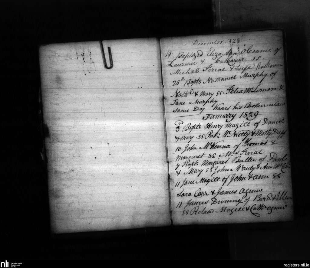 Carrickfergus; County of Antrim; Diocese of Down and Connor. Baptisms, Dec. 1828 to Jan. 1829