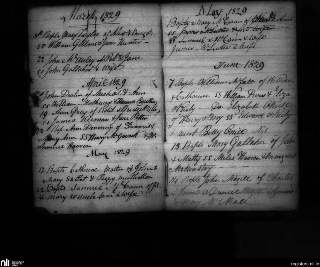 Carrickfergus; County of Antrim; Diocese of Down and Connor. Baptisms, Mar. 1829 to June 1829