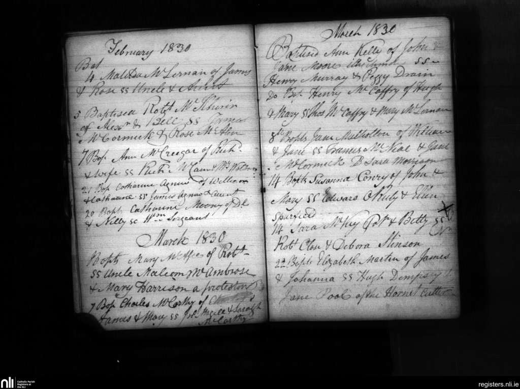 Carrickfergus; County of Antrim; Diocese of Down and Connor. Baptisms, Feb. 1830 to Mar. 1830