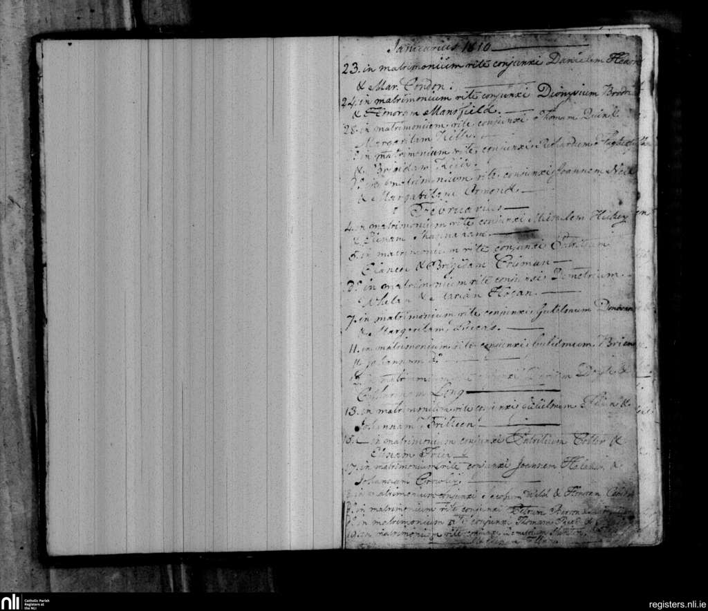 Clashmore and Kinsalebeg; County of Waterford; Diocese of Waterford and Lismore. Marriages, Jan. 1810 to Feb. 1810