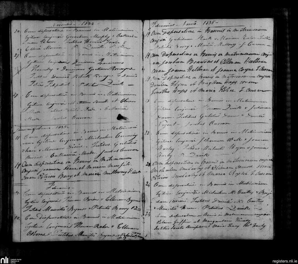 Clashmore and Kinsalebeg; County of Waterford; Diocese of Waterford and Lismore. Marriages, Nov. 1834 to Feb. 1835