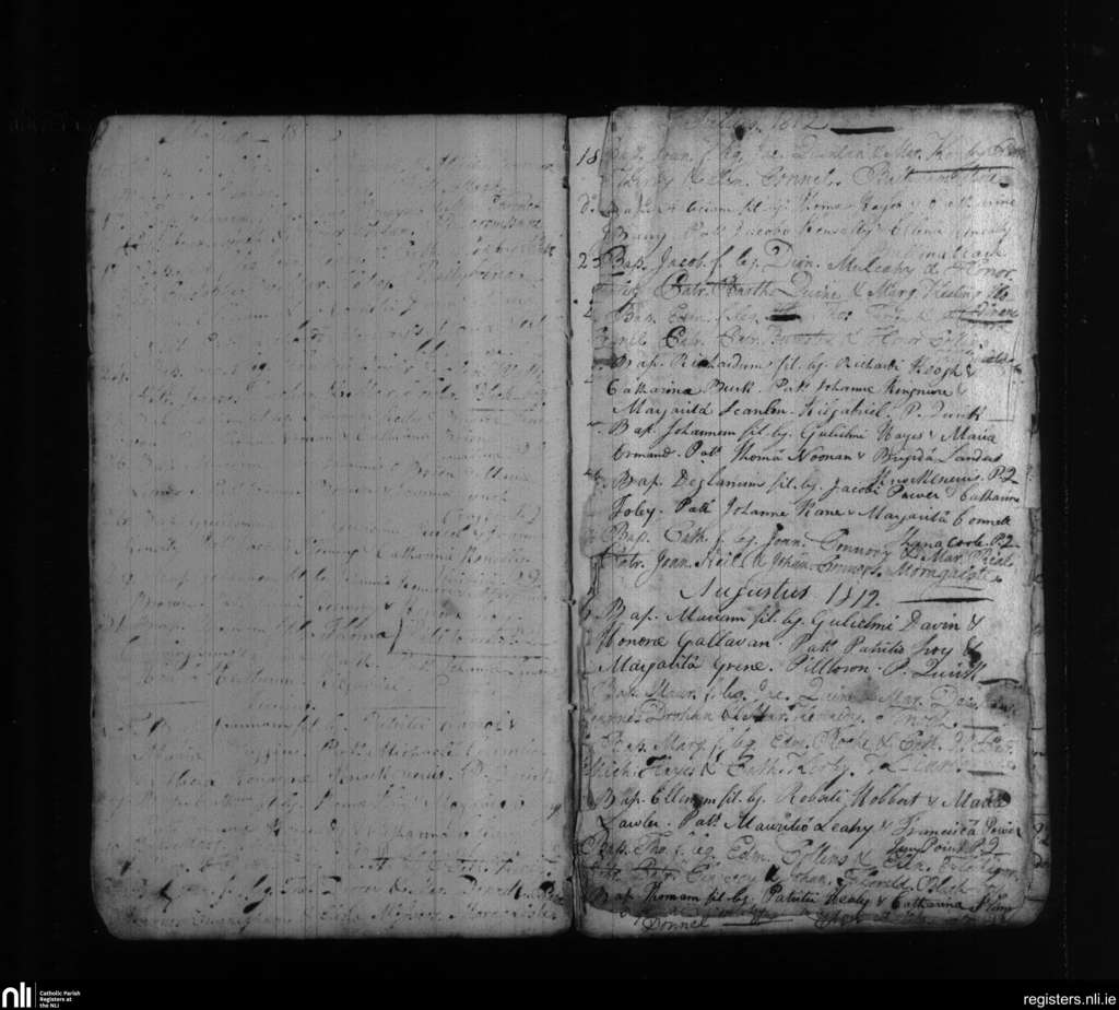 Clashmore and Kinsalebeg; County of Waterford; Diocese of Waterford and Lismore. Baptisms, May 1812 to Aug. 1812
