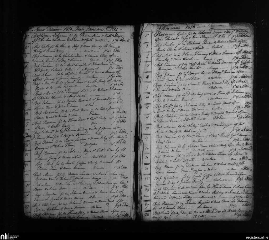 Clashmore and Kinsalebeg; County of Waterford; Diocese of Waterford and Lismore. Baptisms, Jan. 1816 to Feb. 1816
