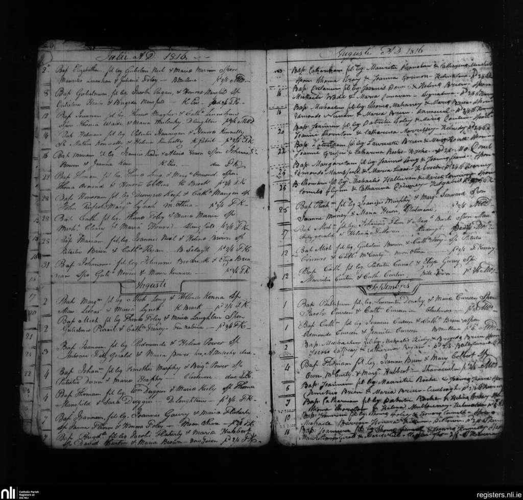 Clashmore and Kinsalebeg; County of Waterford; Diocese of Waterford and Lismore. Baptisms, July 1816 to Sep. 1816