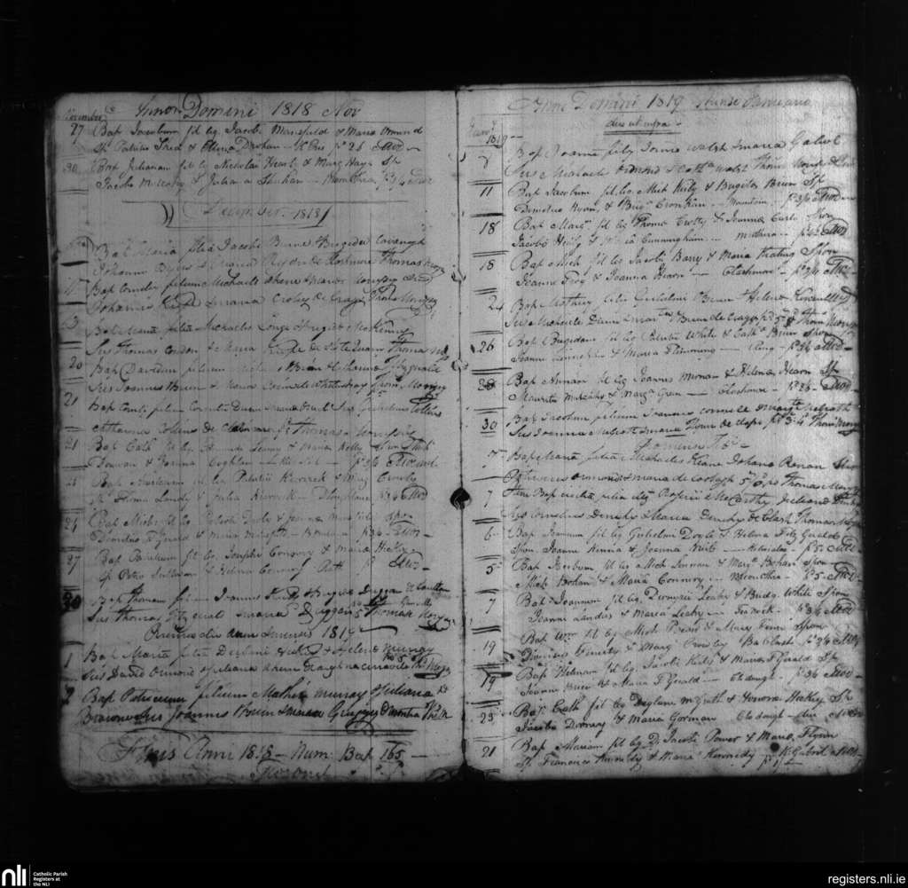 Clashmore and Kinsalebeg; County of Waterford; Diocese of Waterford and Lismore. Baptisms, Nov. 1818 to Feb. 1819