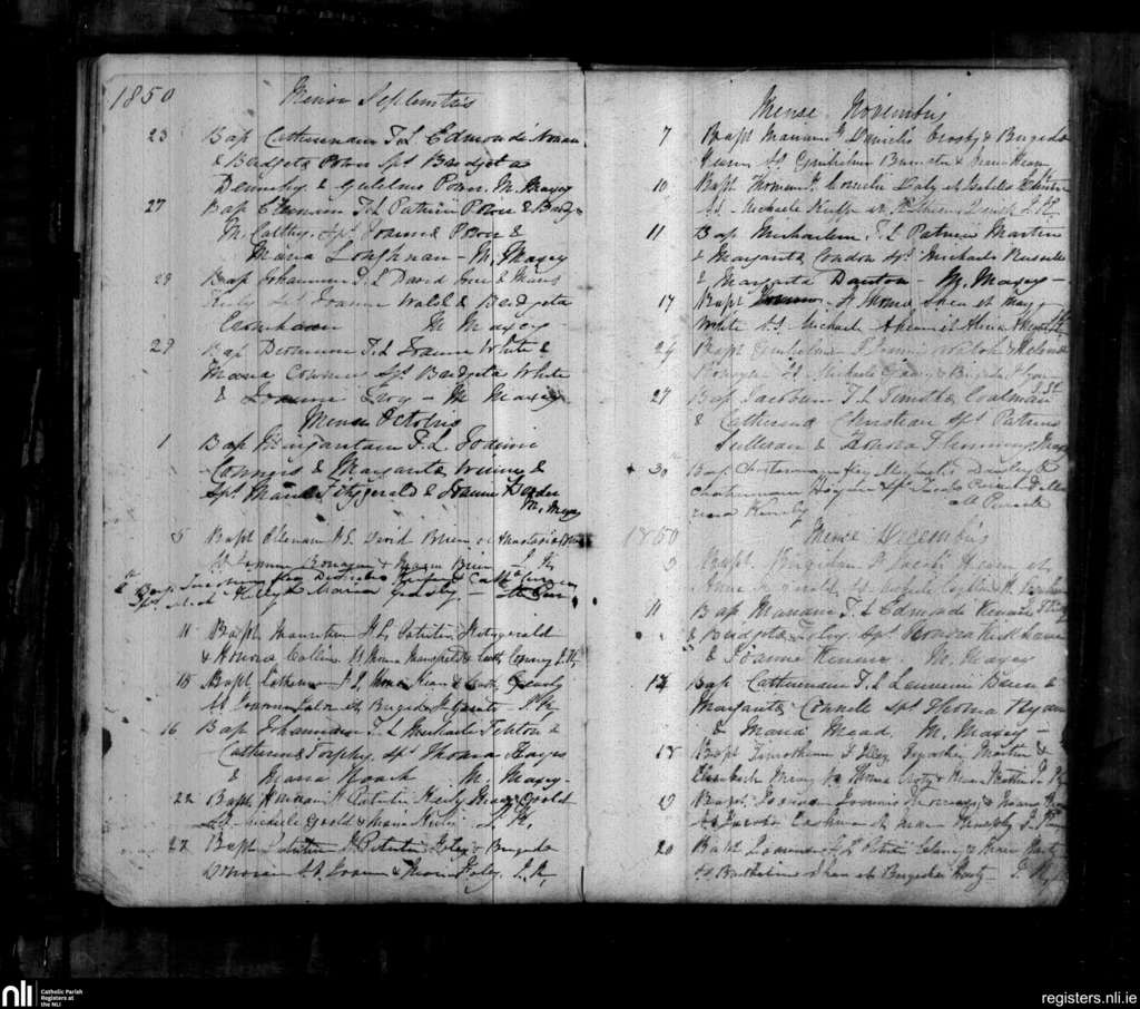 Clashmore and Kinsalebeg; County of Waterford; Diocese of Waterford and Lismore. Baptisms, Sep. 1850 to Dec. 1850