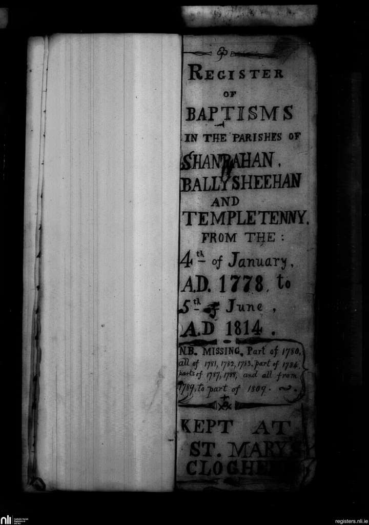 Clogheen; County of Tipperary; Diocese of Waterford and Lismore. Baptisms