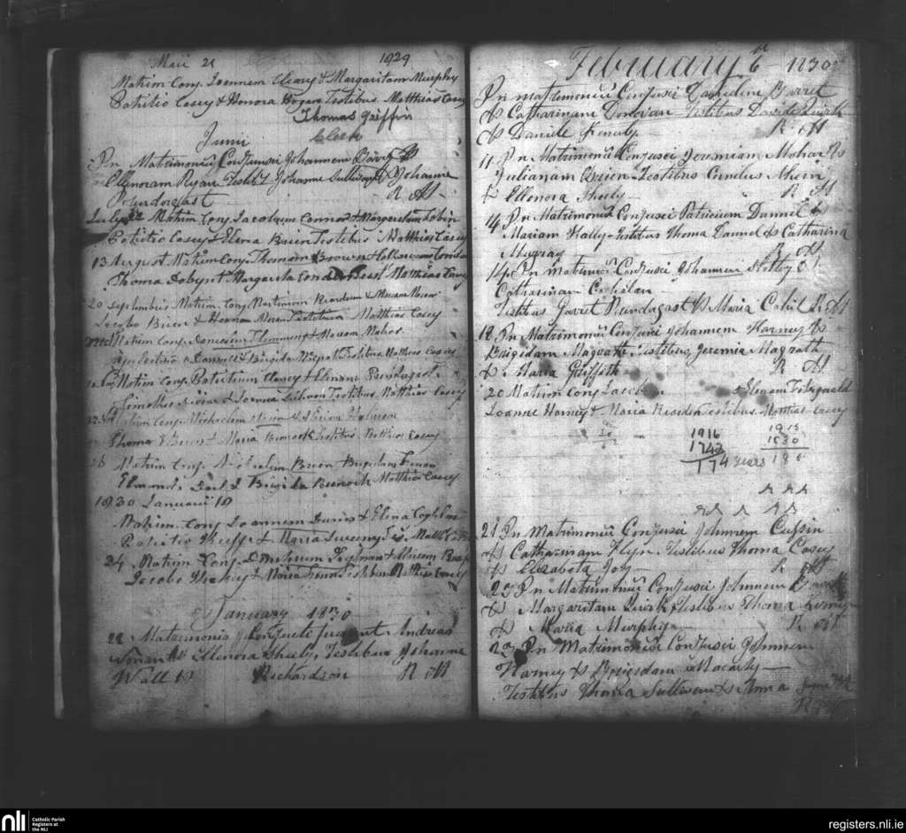 Clogheen; County of Tipperary; Diocese of Waterford and Lismore. Marriages, May 1829 to Feb. 1830
