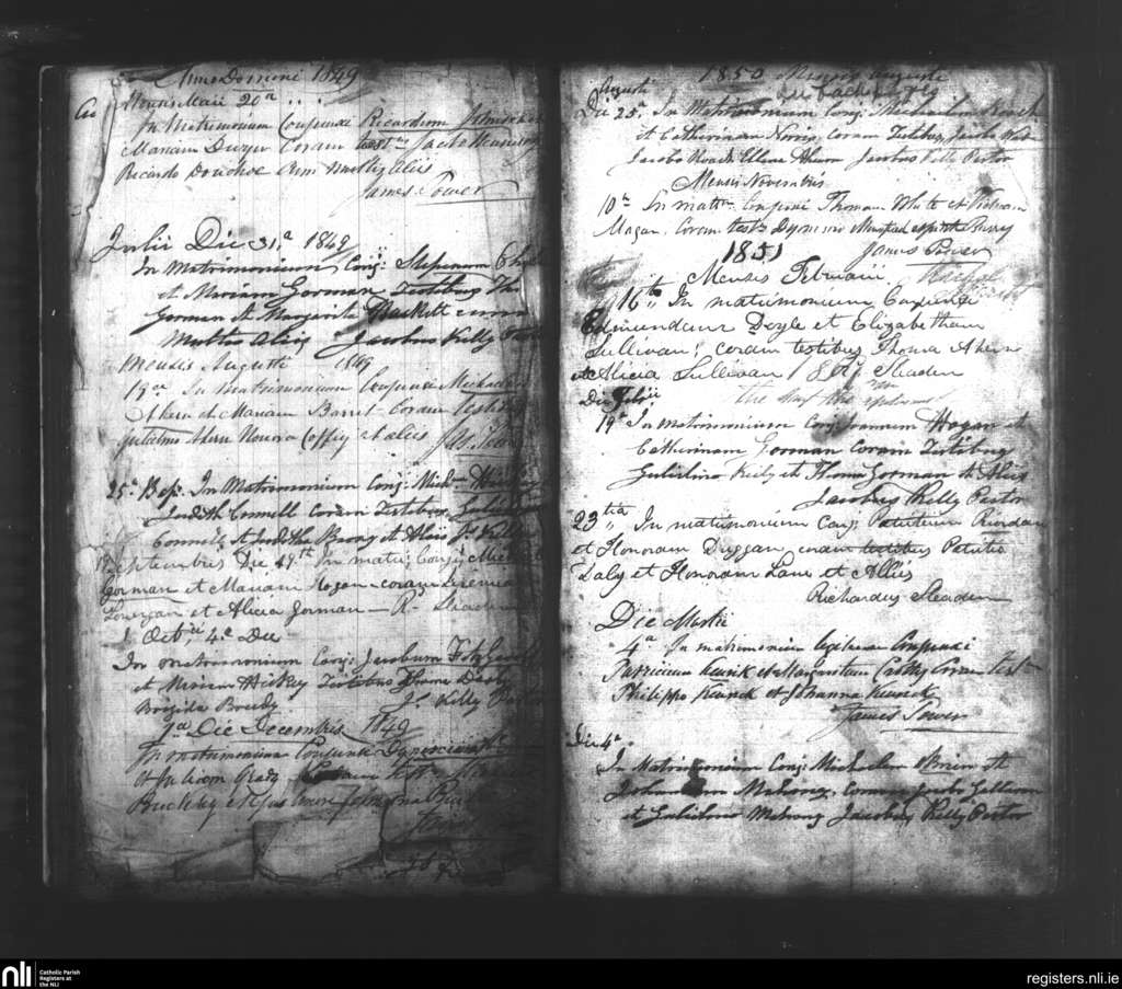 Clogheen; County of Tipperary; Diocese of Waterford and Lismore. Marriages, May 1849 to Mar. 1851