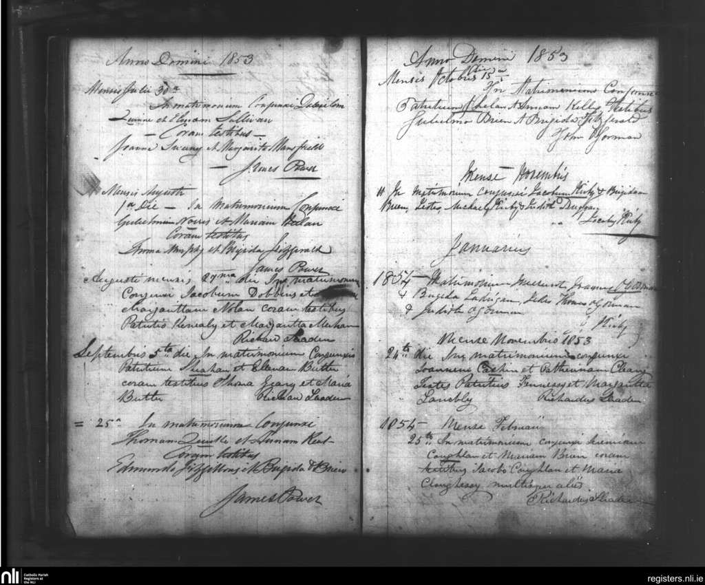 Clogheen; County of Tipperary; Diocese of Waterford and Lismore. Marriages, July 1853 to Feb. 1854