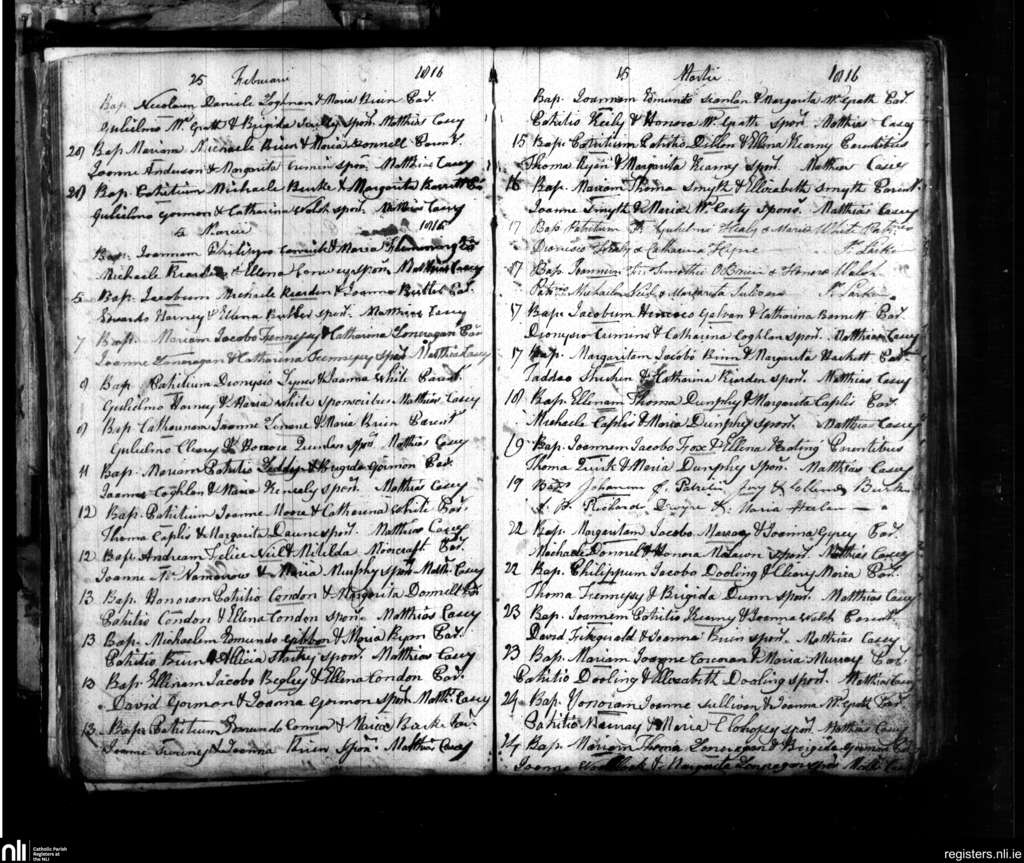 Clogheen; County of Tipperary; Diocese of Waterford and Lismore. Baptisms, Feb. 1816 to Mar. 1816