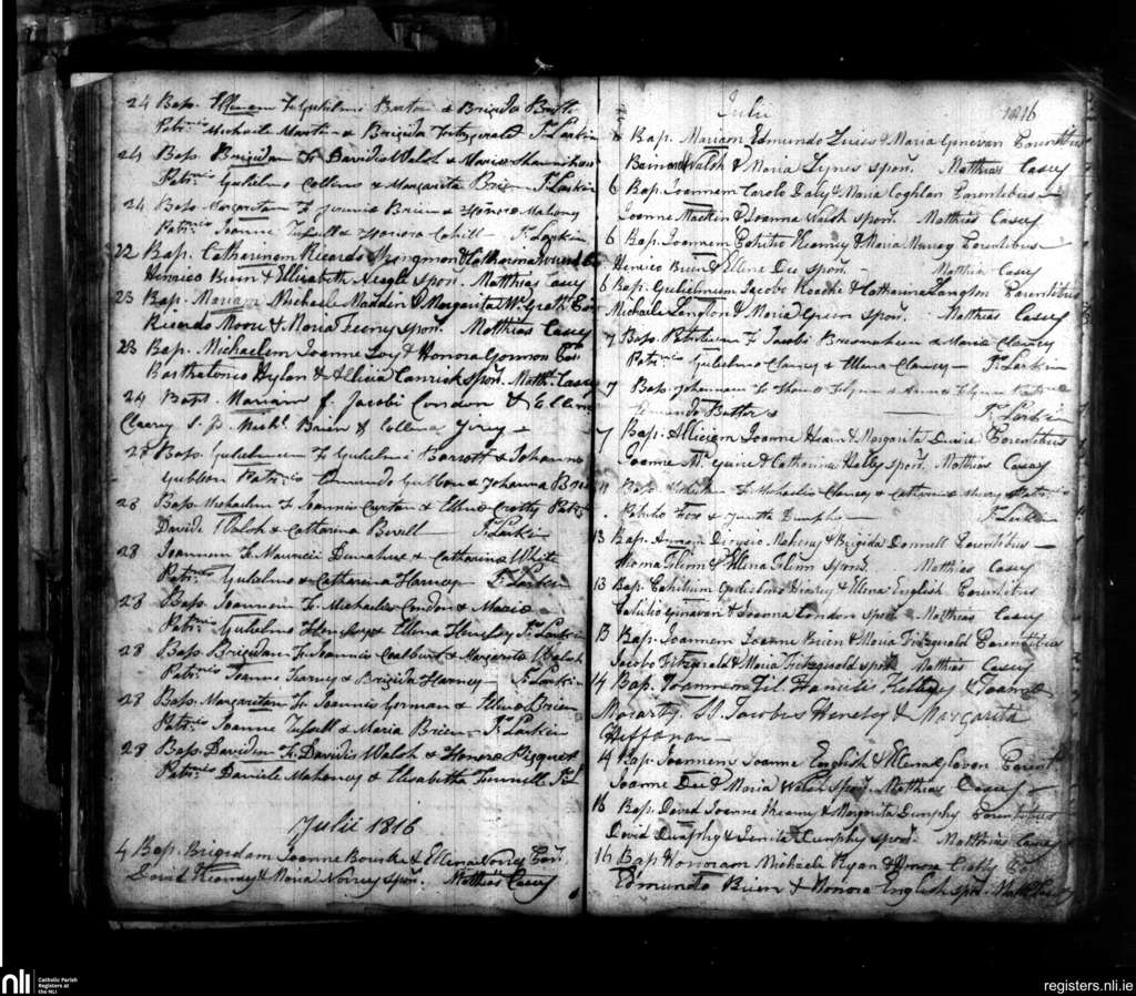 Clogheen; County of Tipperary; Diocese of Waterford and Lismore. Baptisms, June 1816 to July 1816
