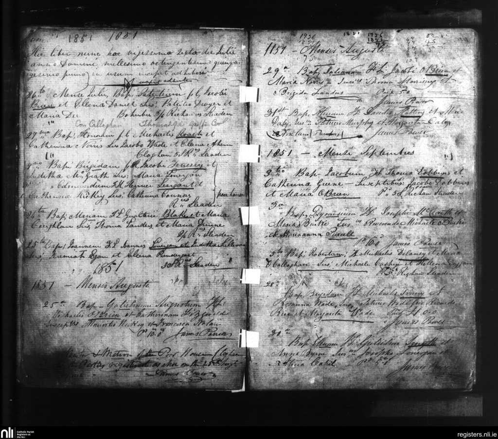 Clogheen; County of Tipperary; Diocese of Waterford and Lismore. Baptisms, July 1851 to Sep. 1851