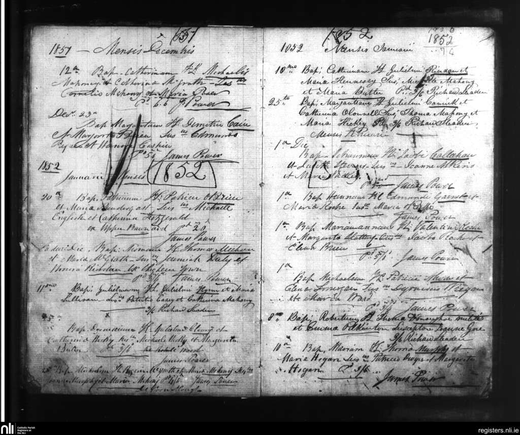 Clogheen; County of Tipperary; Diocese of Waterford and Lismore. Baptisms, Dec. 1851 to Feb. 1852