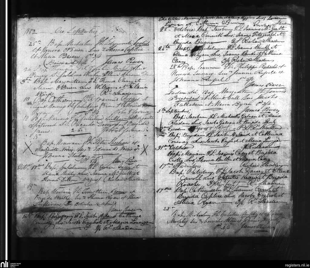 Clogheen; County of Tipperary; Diocese of Waterford and Lismore. Baptisms, Sep. 1852 to Nov. 1852