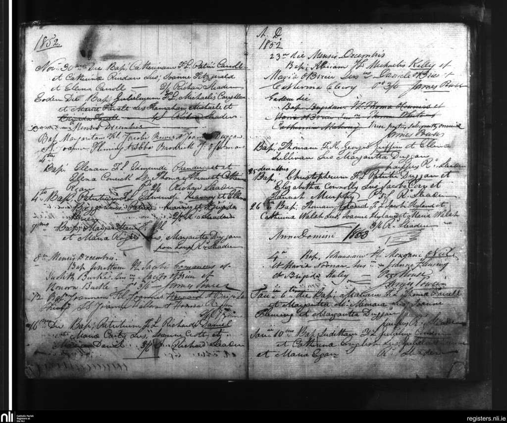 Clogheen; County of Tipperary; Diocese of Waterford and Lismore. Baptisms, Nov. 1852 to Jan. 1853