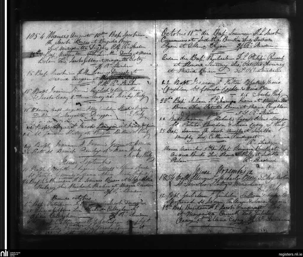 Clogheen; County of Tipperary; Diocese of Waterford and Lismore. Baptisms, Aug. 1854 to Nov. 1854