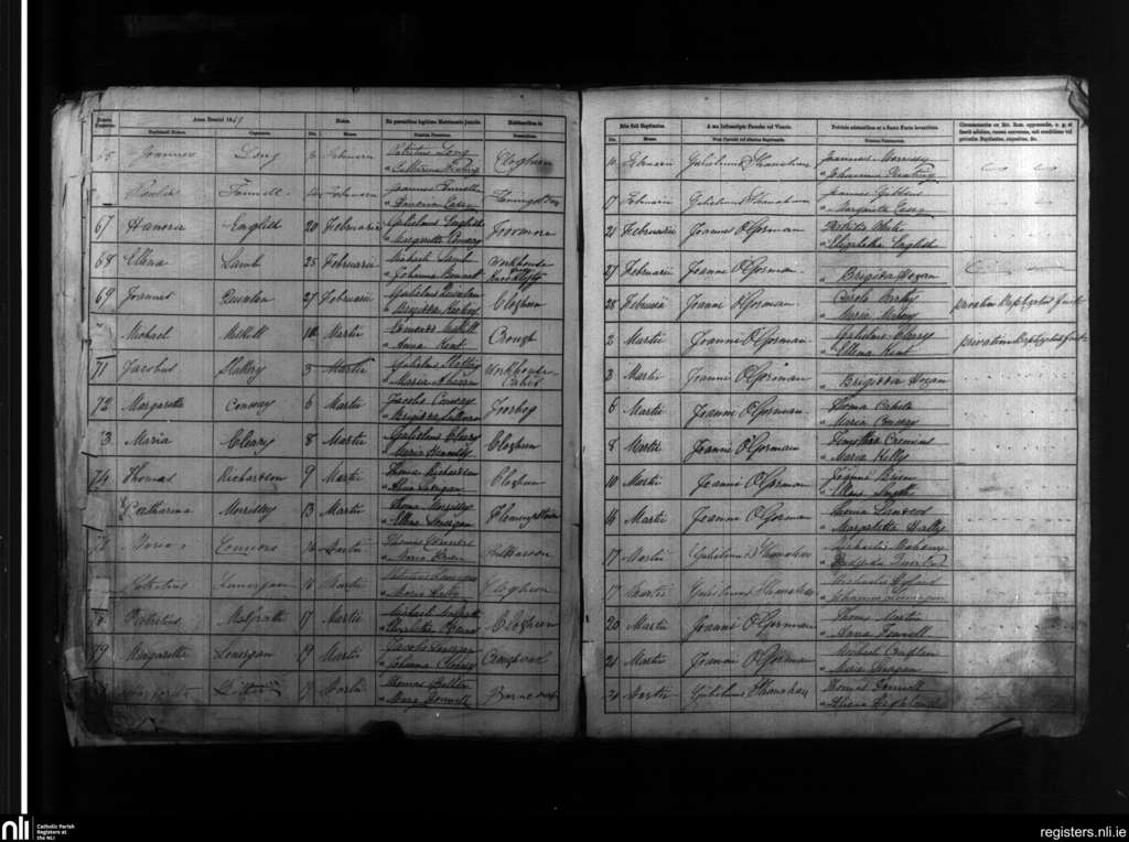 Clogheen; County of Tipperary; Diocese of Waterford and Lismore. Baptisms, Feb. 1869 to Mar. 1869
