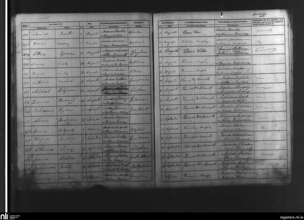 Clogheen; County of Tipperary; Diocese of Waterford and Lismore. Baptisms, Aug. 1871 to Sep. 1871