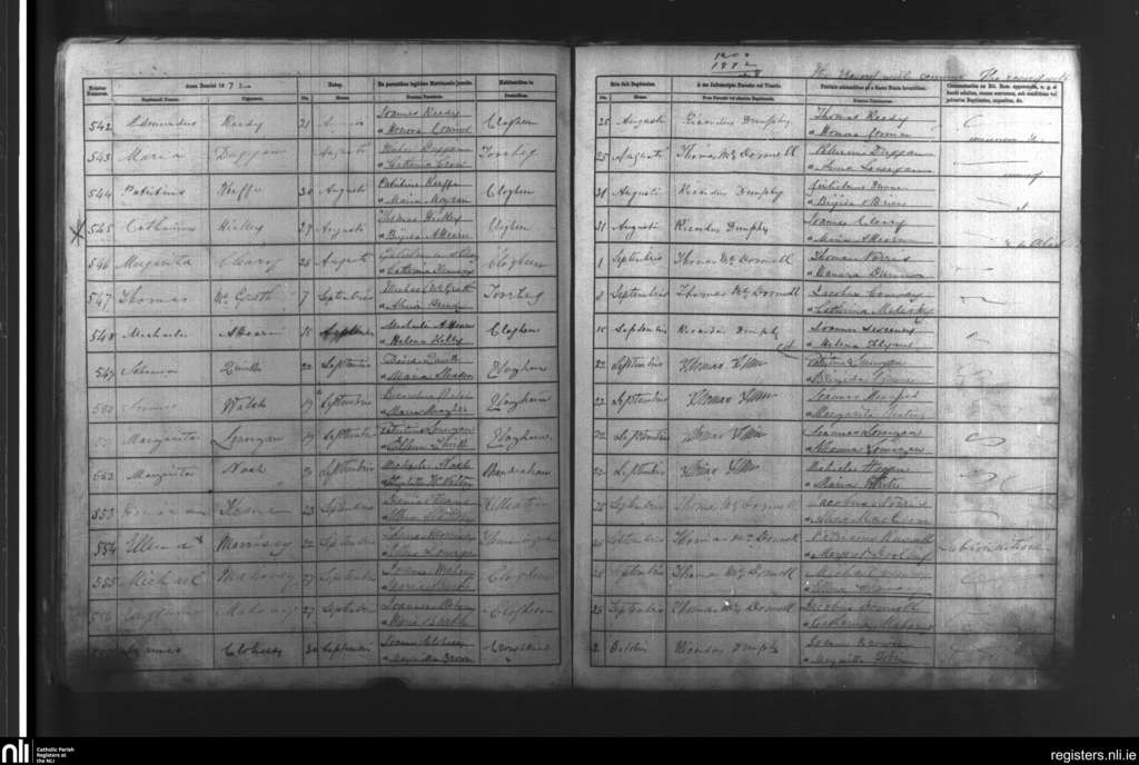 Clogheen; County of Tipperary; Diocese of Waterford and Lismore. Baptisms, Aug. 1872 to Oct. 1872