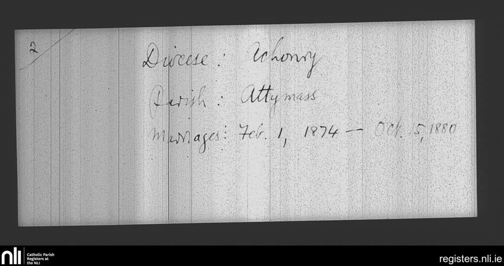Attymass; County of Mayo; Diocese of Achonry. Marriages