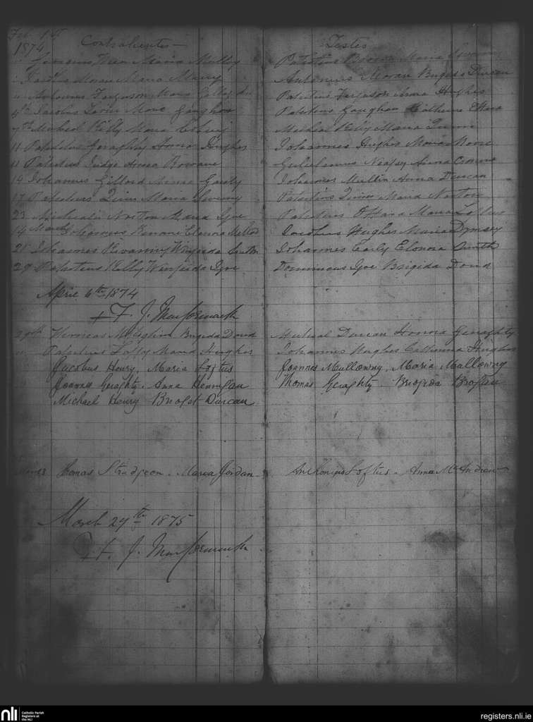 Attymass; County of Mayo; Diocese of Achonry. Marriages, Feb. 1874 to Mar. 1875