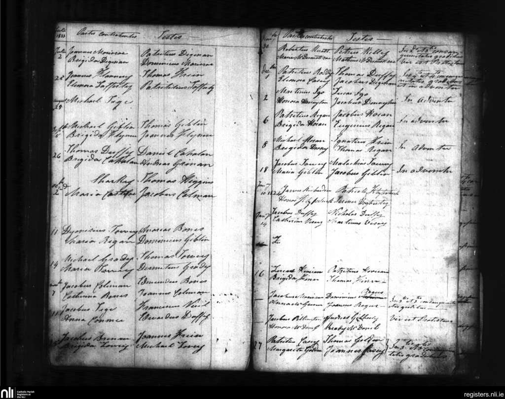 Castlemore and Kilcolman; County of Mayo, Roscommon, Sligo; Diocese of Achonry. Marriages, Jan. 1824 to Dec. 1833