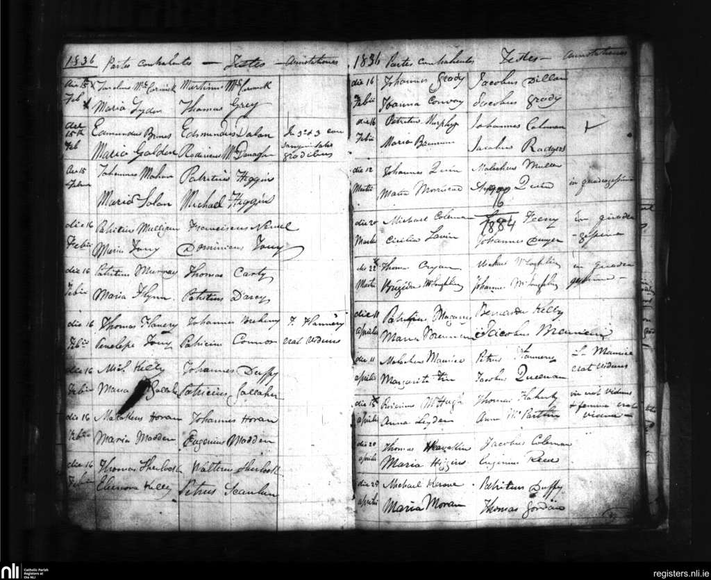 Castlemore and Kilcolman; County of Mayo, Roscommon, Sligo; Diocese of Achonry. Marriages, Feb. 1836 to Apr. 1836