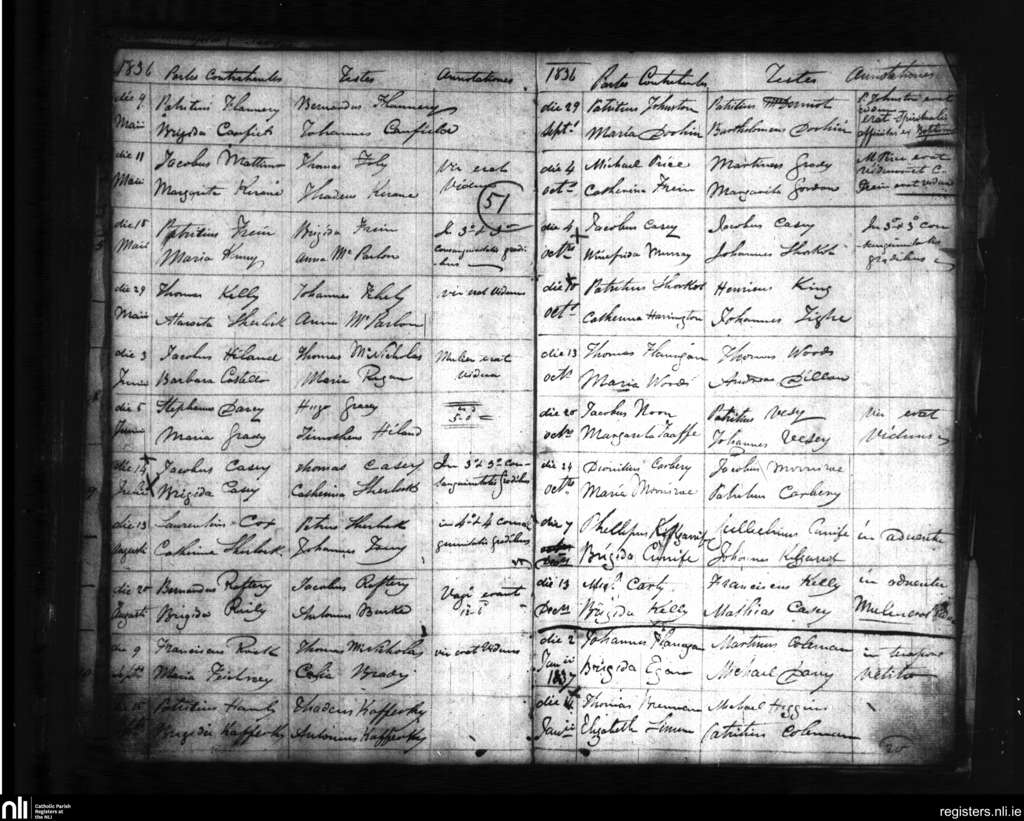 Castlemore and Kilcolman; County of Mayo, Roscommon, Sligo; Diocese of Achonry. Marriages, May 1836 to Jan. 1837