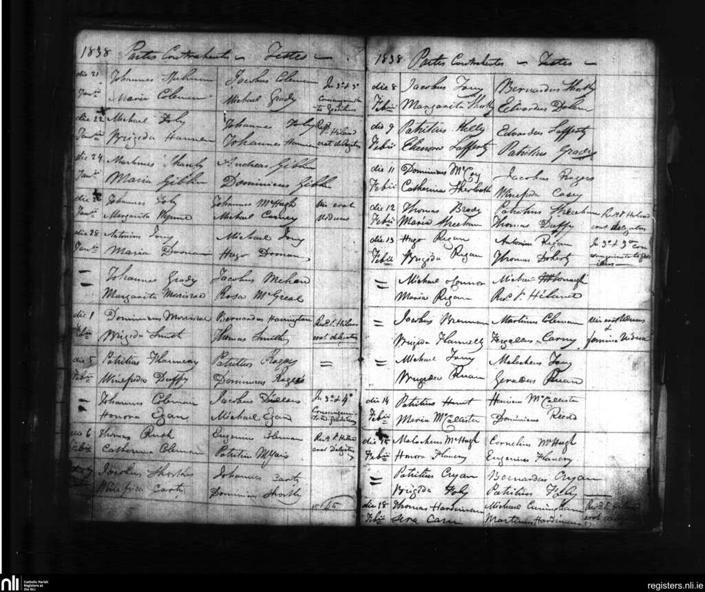 Castlemore and Kilcolman; County of Mayo, Roscommon, Sligo; Diocese of Achonry. Marriages, Jan. 1838 to Feb. 1838