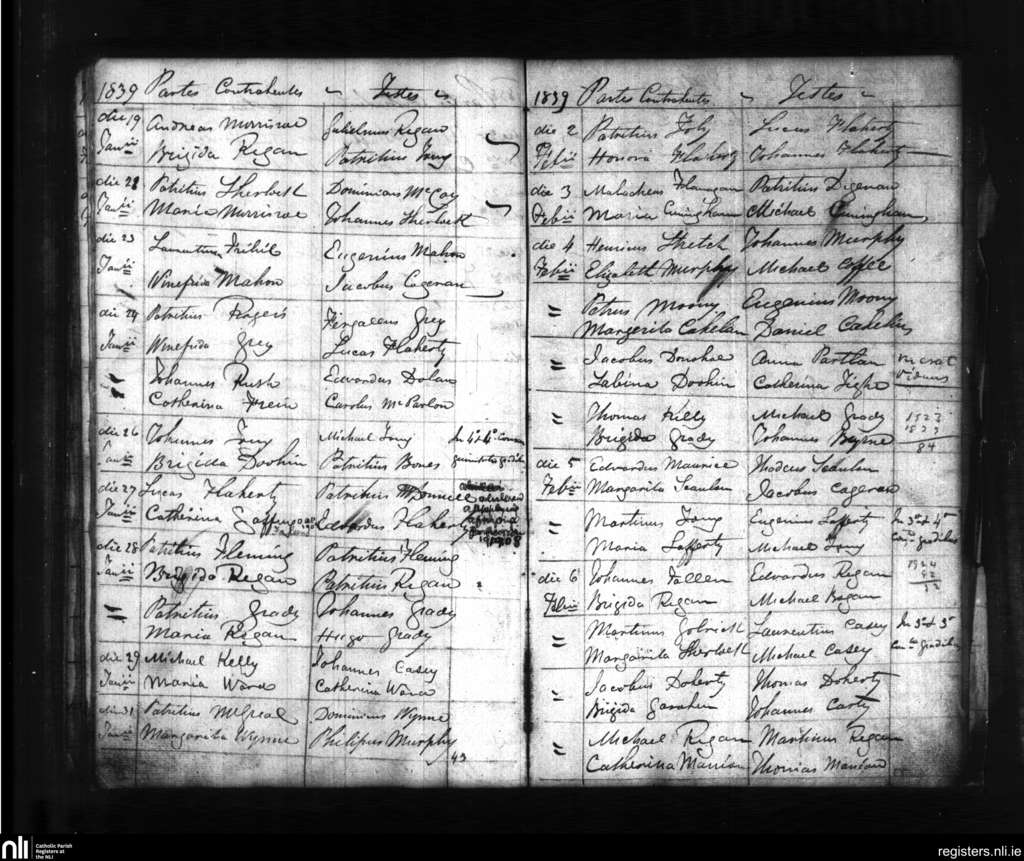 Castlemore and Kilcolman; County of Mayo, Roscommon, Sligo; Diocese of Achonry. Marriages, Jan. 1839 to Feb. 1839
