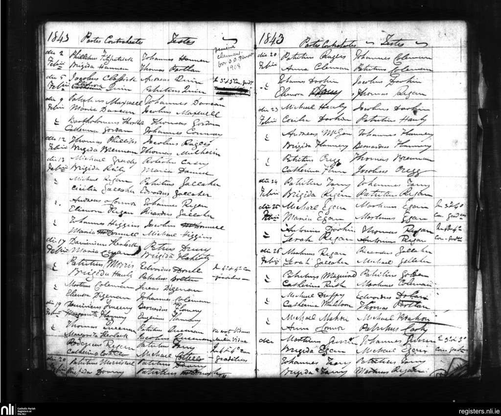 Castlemore and Kilcolman; County of Mayo, Roscommon, Sligo; Diocese of Achonry. Marriages, Feb. 1843