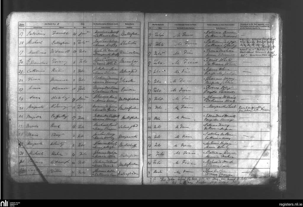 Castlemore and Kilcolman; County of Mayo, Roscommon, Sligo; Diocese of Achonry. Baptisms, Feb. 1860 to Mar. 1860