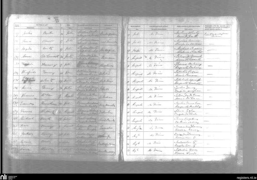 Castlemore and Kilcolman; County of Mayo, Roscommon, Sligo; Diocese of Achonry. Baptisms, July 1860 to Aug. 1860