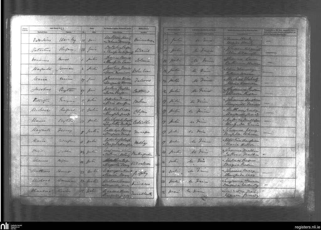 Castlemore and Kilcolman; County of Mayo, Roscommon, Sligo; Diocese of Achonry. Baptisms, July 1861