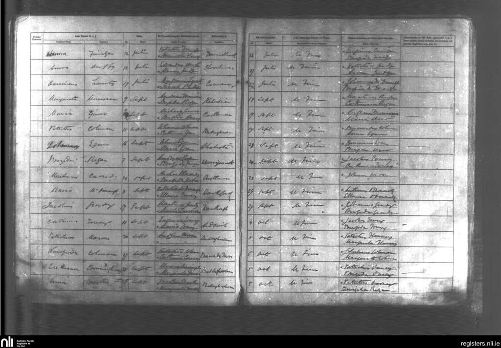 Castlemore and Kilcolman; County of Mayo, Roscommon, Sligo; Diocese of Achonry. Baptisms, July 1861 to Oct. 1861