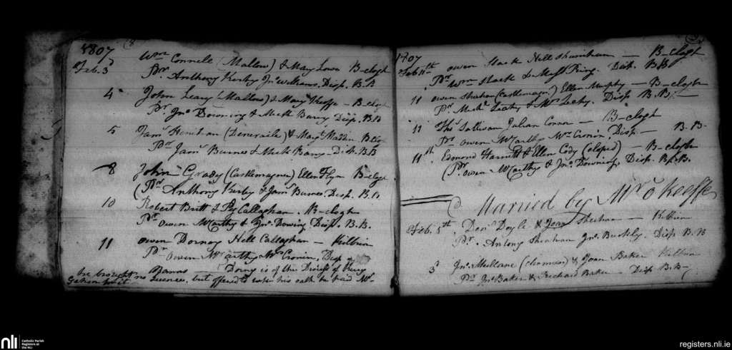 Ballyclough; County of Cork; Diocese of Cloyne. Marriages, Feb. 1807