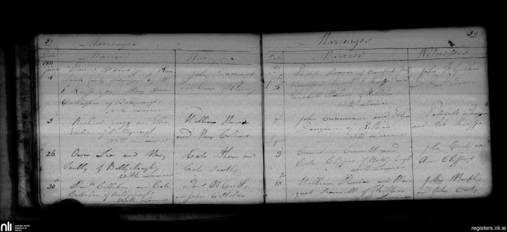 Ballyclough; County of Cork; Diocese of Cloyne. Marriages, June 1811 to Aug. 1811
