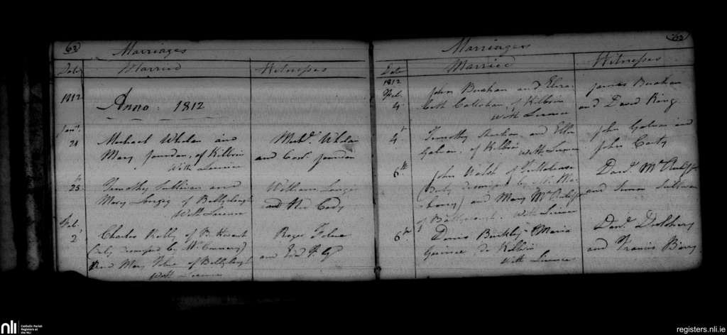 Ballyclough; County of Cork; Diocese of Cloyne. Marriages, Jan. 1812 to Feb. 1812