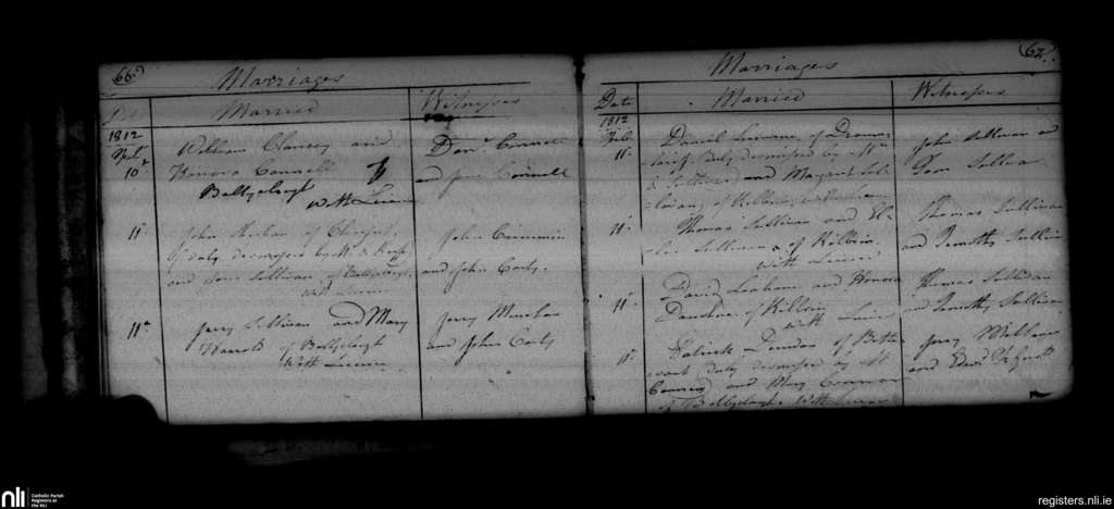 Ballyclough; County of Cork; Diocese of Cloyne. Marriages, Feb. 1812