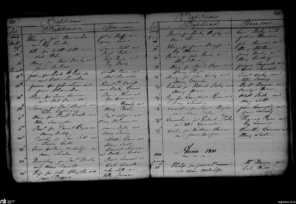 Ballyclough; County of Cork; Diocese of Cloyne. Baptisms, Nov. 1809 to Jan. 1810