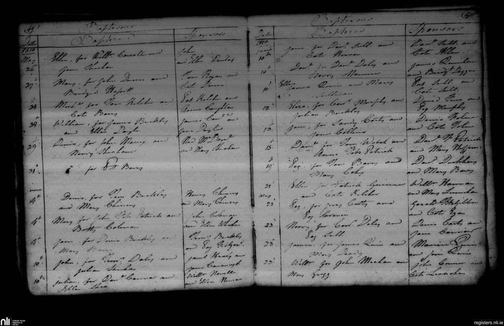 Ballyclough; County of Cork; Diocese of Cloyne. Baptisms, May 1810 to June 1810