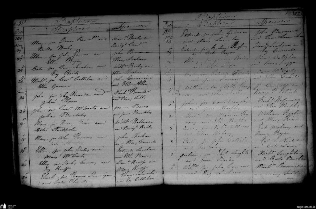 Ballyclough; County of Cork; Diocese of Cloyne. Baptisms, May 1810 to July 1810