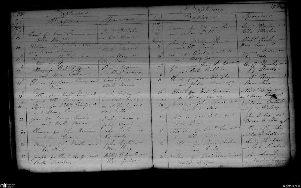 Ballyclough; County of Cork; Diocese of Cloyne. Baptisms, July 1810 to Aug. 1810
