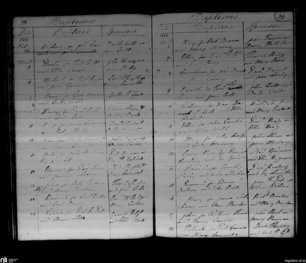 Ballyclough; County of Cork; Diocese of Cloyne. Baptisms, Feb. 1821 to Apr. 1821