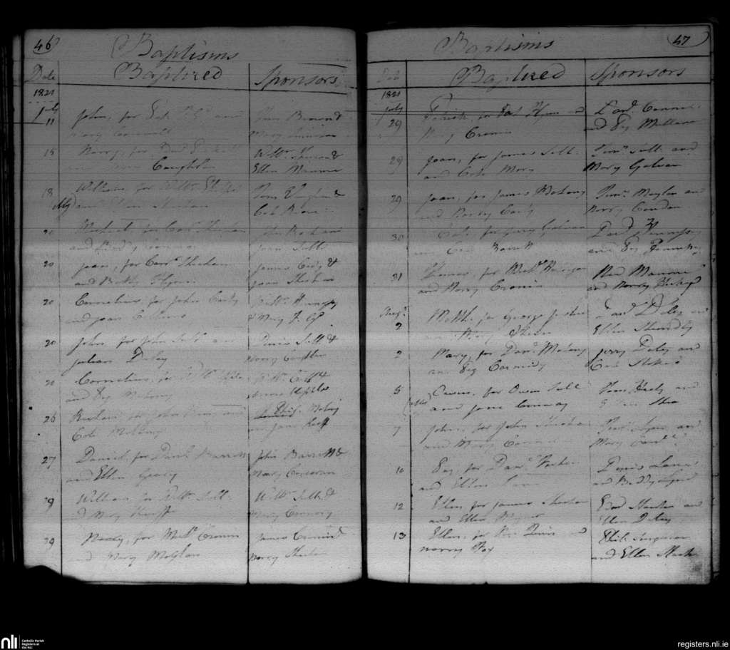 Ballyclough; County of Cork; Diocese of Cloyne. Baptisms, July 1821 to Aug. 1821