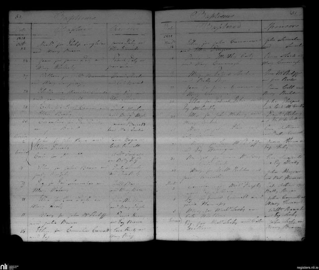 Ballyclough; County of Cork; Diocese of Cloyne. Baptisms, Oct. 1821 to Dec. 1821