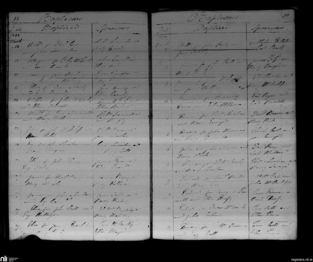 Ballyclough; County of Cork; Diocese of Cloyne. Baptisms, Mar. 1822 to Apr. 1822