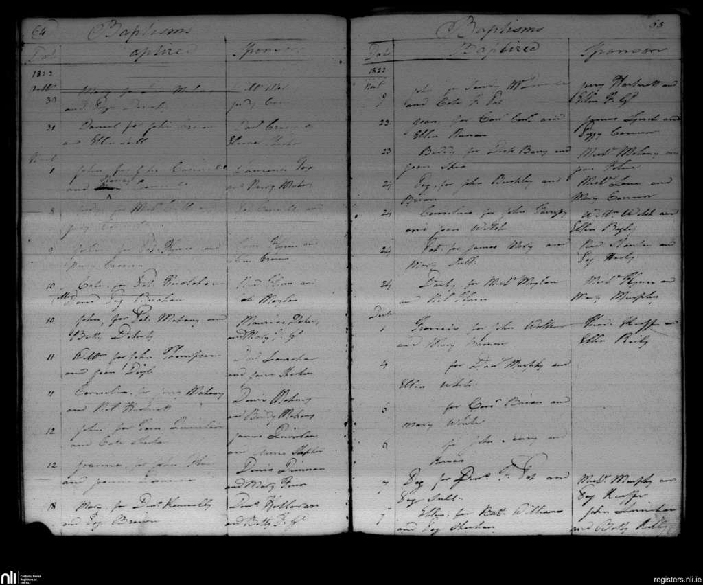 Ballyclough; County of Cork; Diocese of Cloyne. Baptisms, Oct. 1822 to Dec. 1822