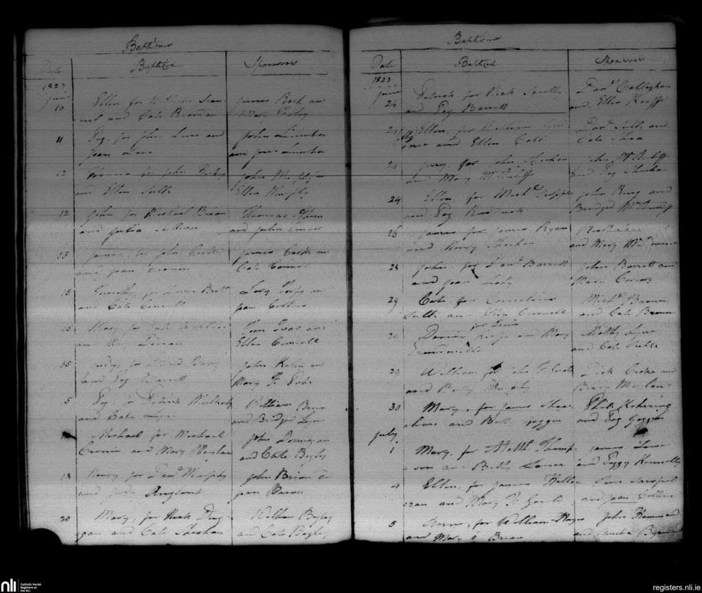 Ballyclough; County of Cork; Diocese of Cloyne. Baptisms, June 1823 to July 1823